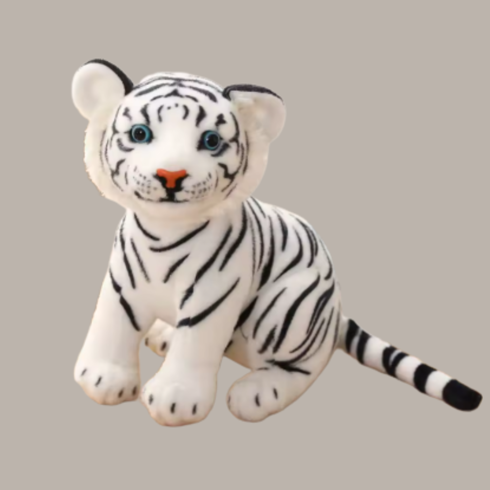 You can also choose the White Tiger version, featuring the same ultra-soft feel with striking white fur and bold black striping — perfect for collectors or anyone who loves unique wild animal plushies.