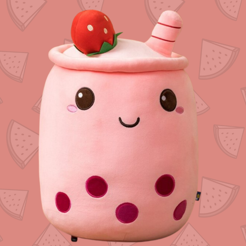 Introducing Kawaii Strawberry Sugar Boba Plushie! Squeezable, Super Soft Stuffed Plushie available in 4 sizes.